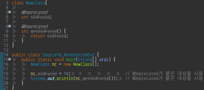 | @Deprecated | 앞으로 사용하지 않을 것을 권장하는 알림이 생긴다. |