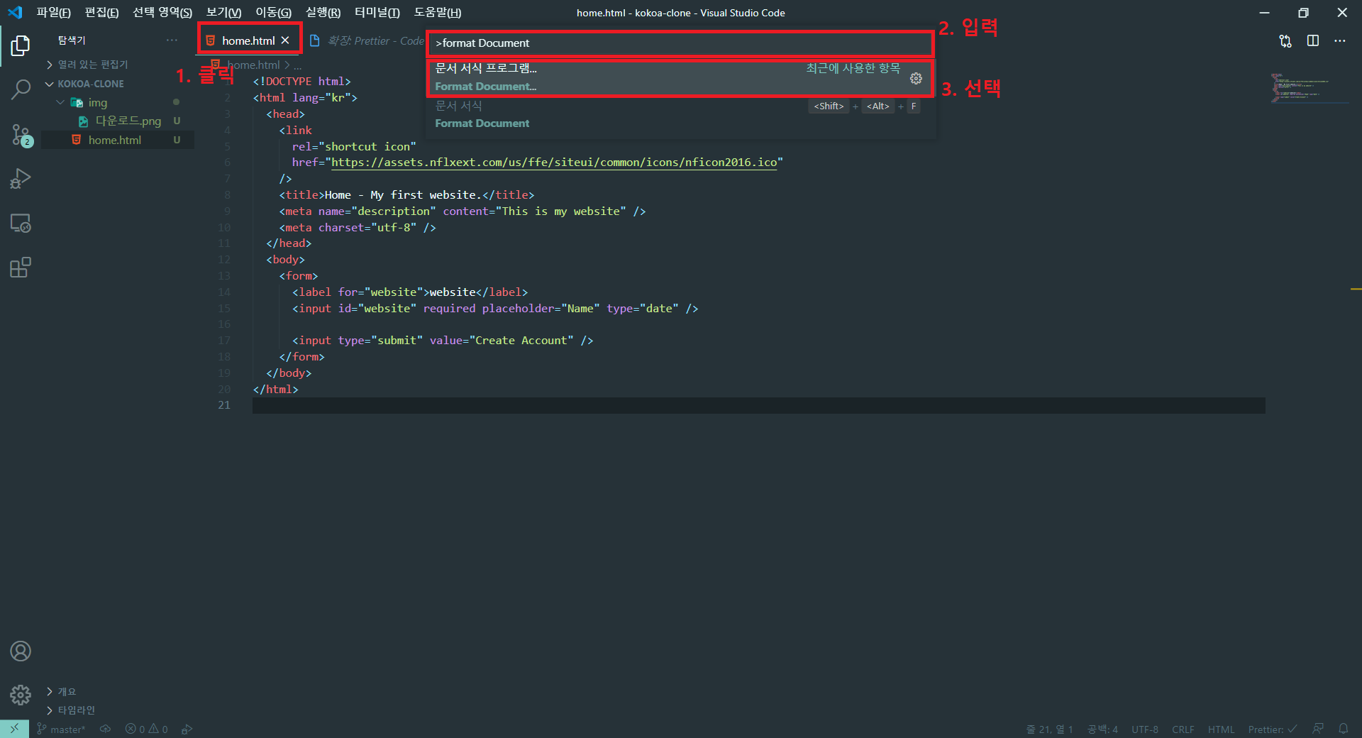 (나는 내가 만들어서 놀고 있던 home.html탭을 클릭했다)