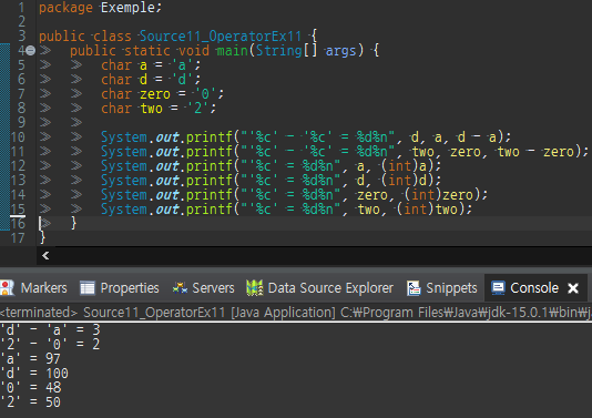 위의 예제를 보면 문자도 연산이 된다는걸 확인할수 있었다.