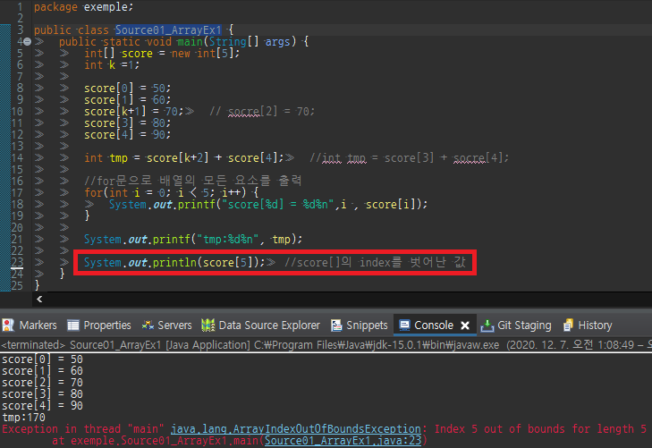 int val = score[0]; // 배열 score의 0번째 index에 저장된 값을 val에 저장