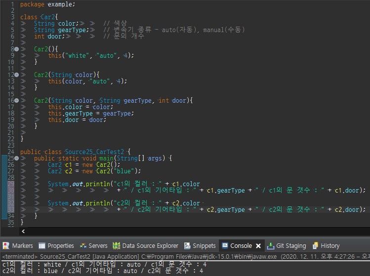 생성자도 오버로딩이 가능해서 하나의 클래스에 여러 개의 생성자가 존재할 수 있다.