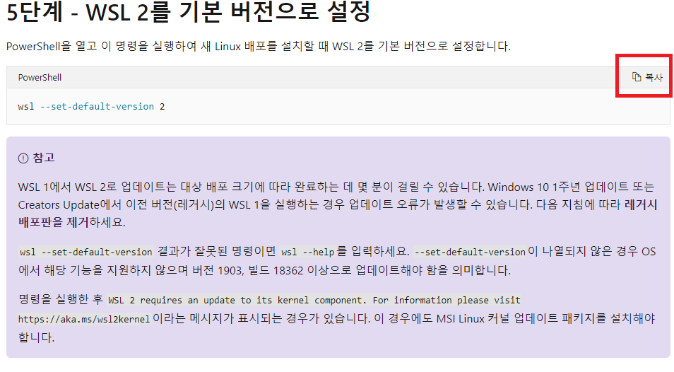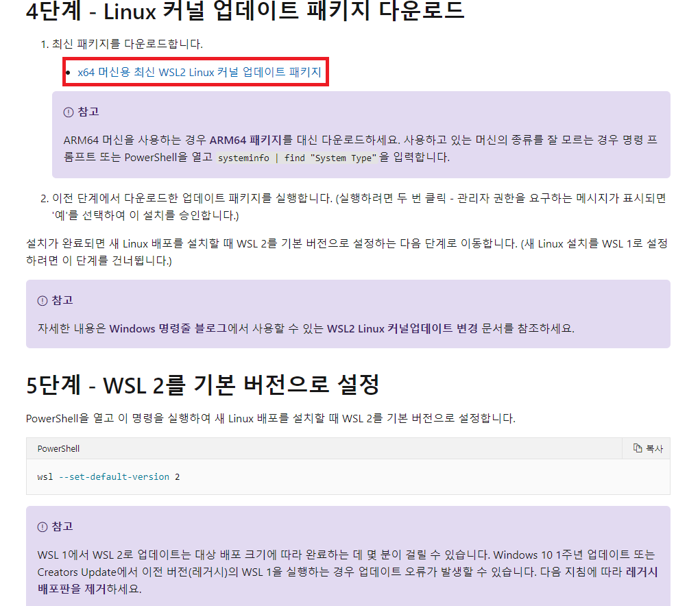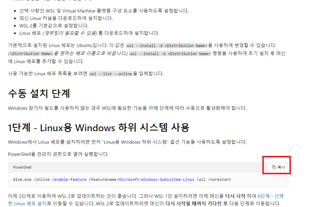 아래의 링크로 들어간다. (구글에 WSL2라고 검색해도 됨)