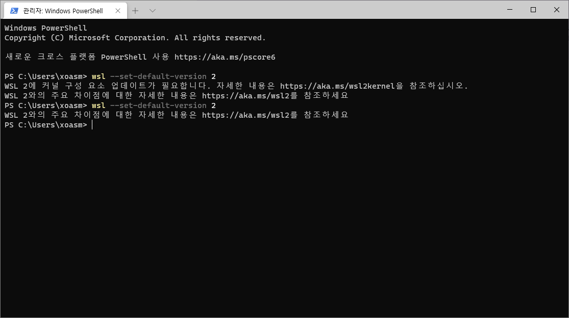 Ubuntu에 WSL2를 사용할 거라는 걸 알려주어야 한다.