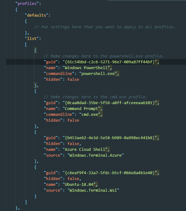 원하는 프로그램의 guid를 복사해서 defaultProfile에 붙여 넣기 하면 된다