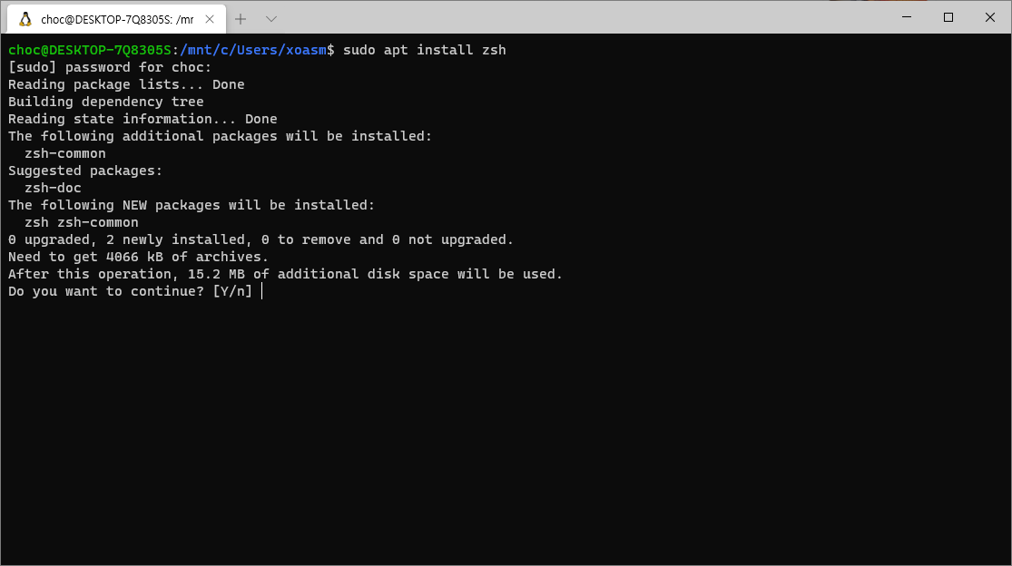 'sudo apt install zsh'라고 작성하면 된다.