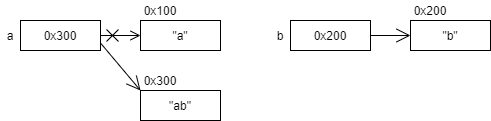 새로운 문자열 ("ab")이 담긴 String인스턴스가 생성되는 것이다.