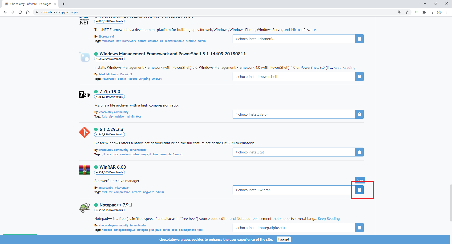 8. 설치가 끝난 후 사용법은 다시 Chocolatey에 들어가서 Find Packages를 클릭