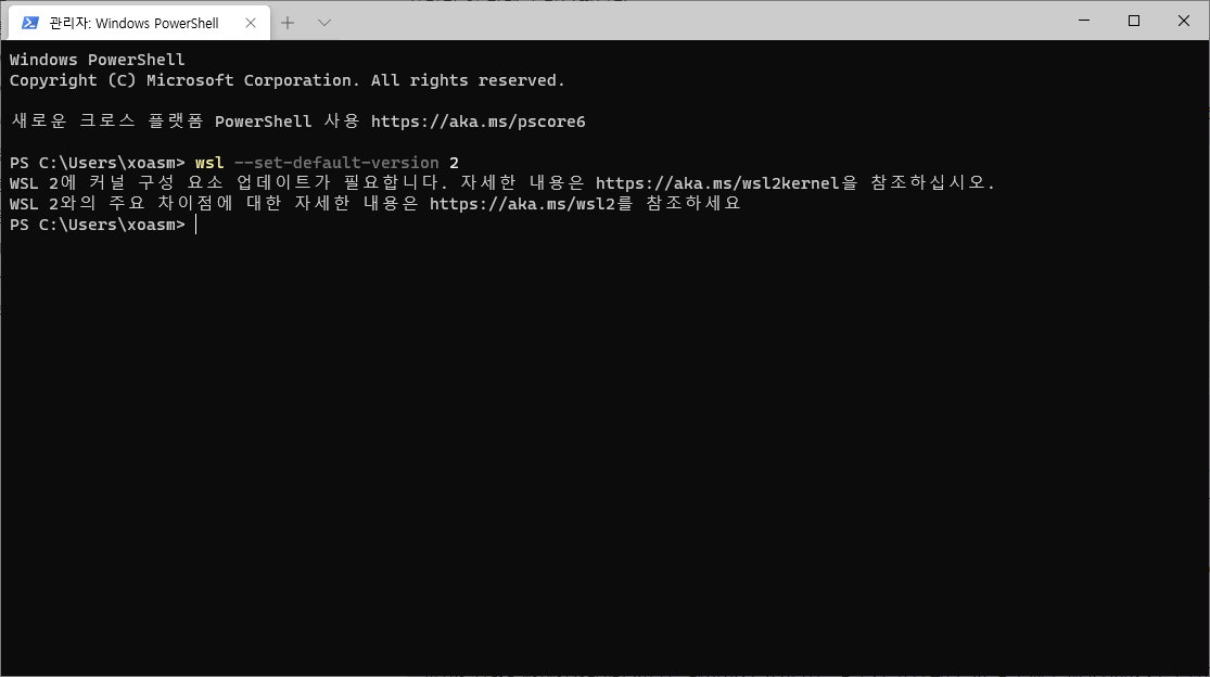 Ubuntu에 WSL2를 사용할 거라는 걸 알려주어야 한다.