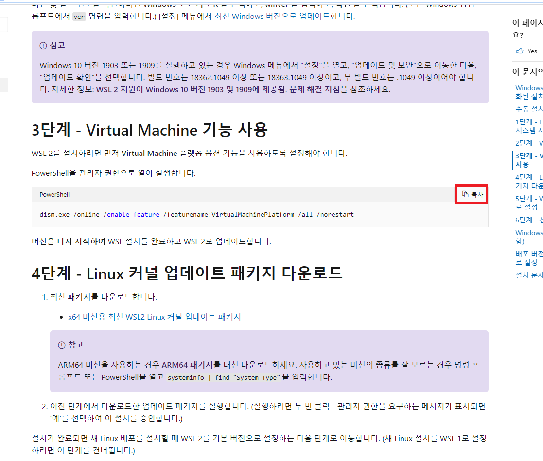 아래의 링크로 들어간다. (구글에 WSL2라고 검색해도 됨)